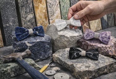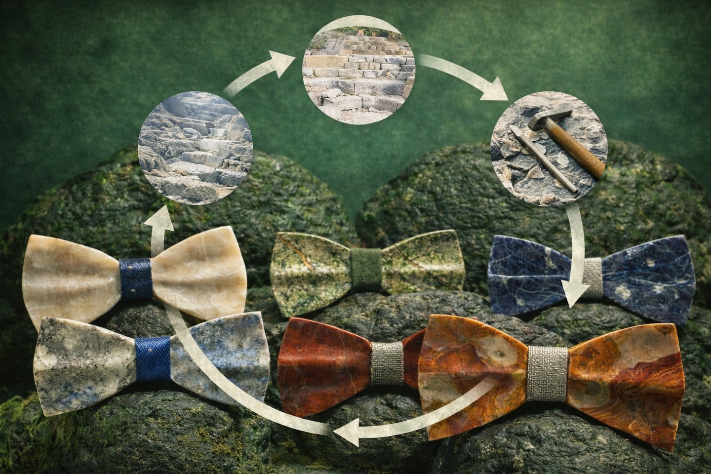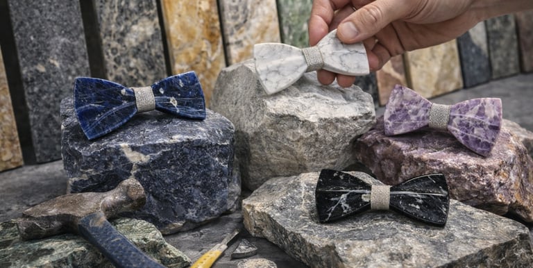 Stone & Style Couture unisce eleganza e sostenibilità con papillon personalizzati in pietre naturali, rispettando il pianeta e il tuo stile unico.