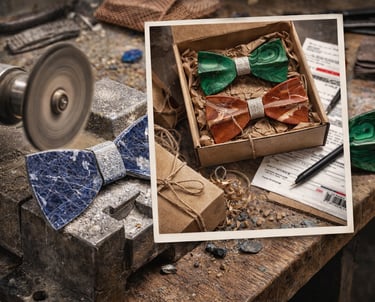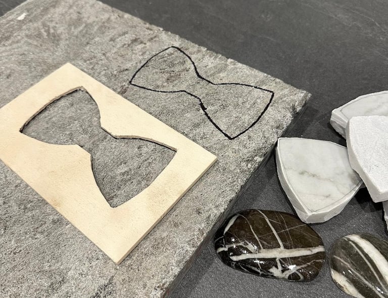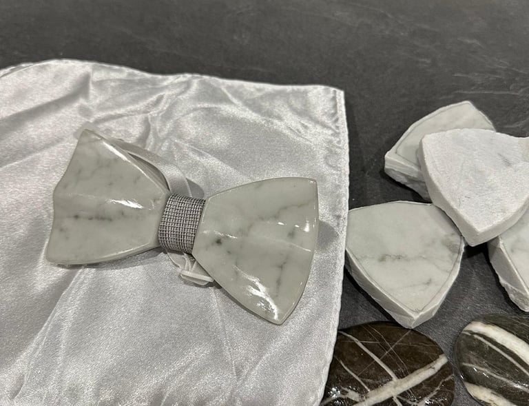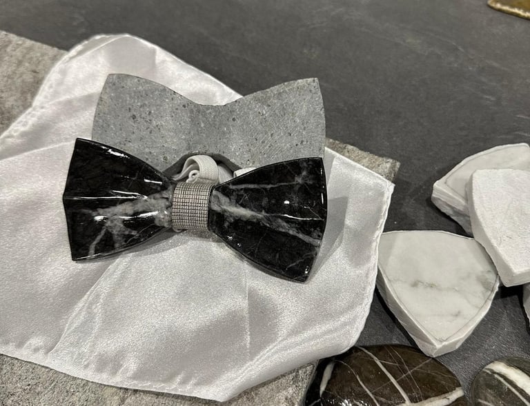 Da questa passione prende forma il nostro progetto: unire l’arte artigiana alla moda sostenibile, creando papillon in pietra naturale che non seguono le tendenze, ma danno valore alla materia e al lavoro umano. Ogni creazione nasce da un processo manuale attento, dove nulla viene sprecato e ogni frammento trova nuova vita, secondo i principi dell’economia circolare green.