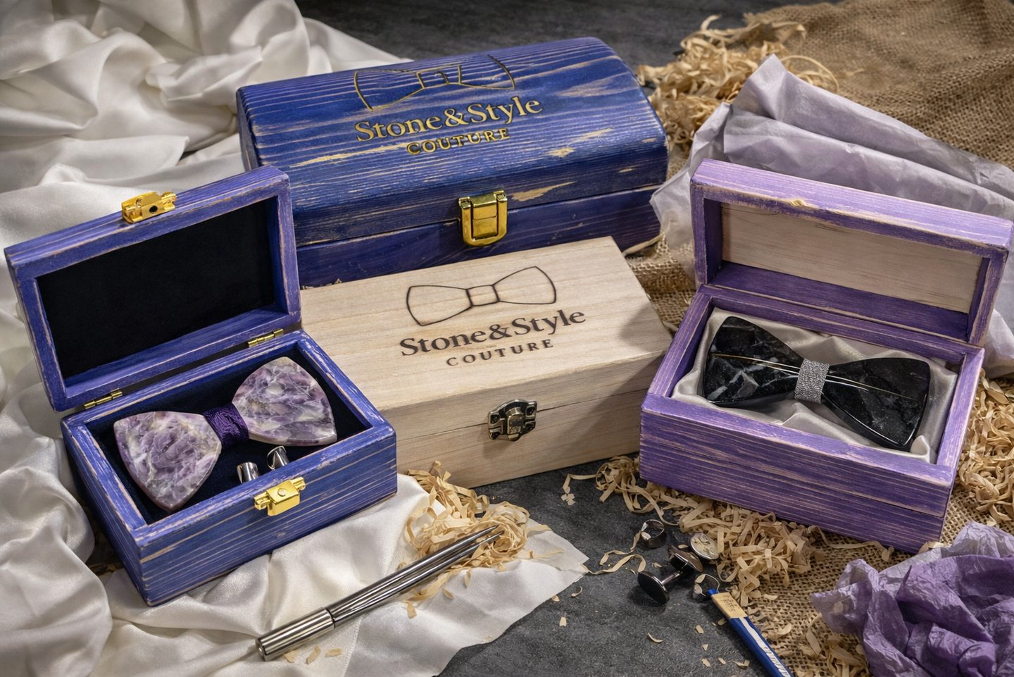 Artigianalità sostenibile per ogni papillon con pietra naturale unica